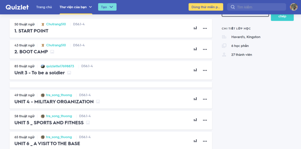 - Tạo bộ từ vựng: Giáo viên có thể tạo các bộ thẻ từ vựng theo chủ đề và chia sẻ với học sinh.