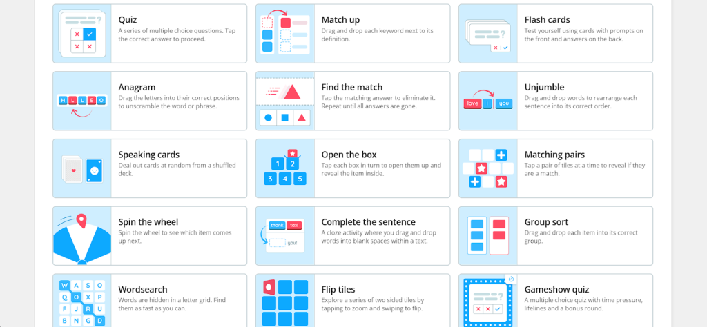 Các dạng trò chơi trên Wordwall