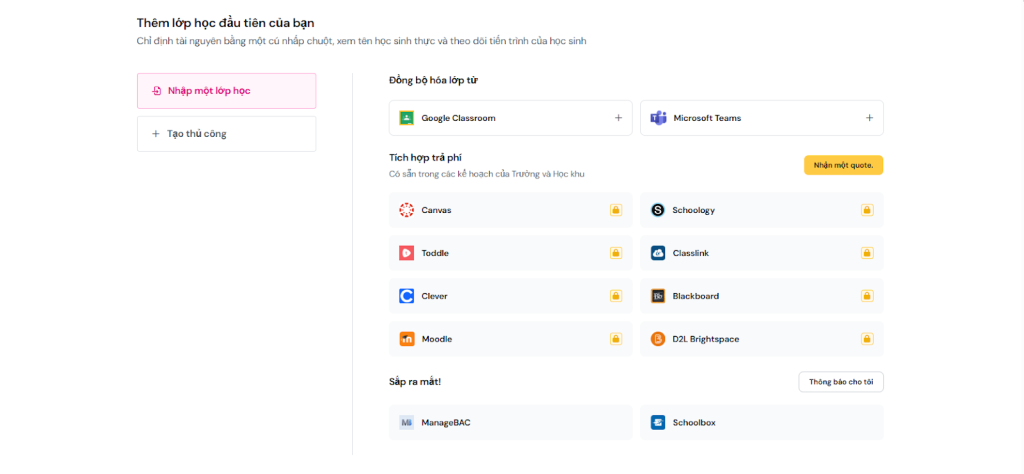 Tạo lớp học hoặc đồng bộ hóa lớp học từ Google Classroom hoặc Microsoft Teams