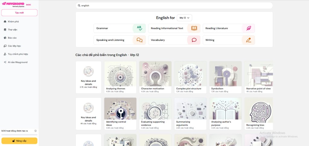 Giao diện những chủ đề phổ biến cho môn tiếng Anh