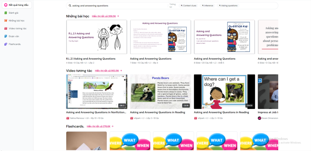 Thư viện tài nguyên trực tuyến, bao gồm bài học, video tương tác, flashcards,…