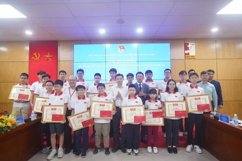 Tặng bằng khen của T.Ư Đoàn cho học sinh đoạt giải tại cuộc thi giải Toán bằng tiếng Anh (Đấu trường Toán học châu Á – AIMO) năm 2024-2025 do Công ty Cổ phần Tiền Phong tổ chức.
