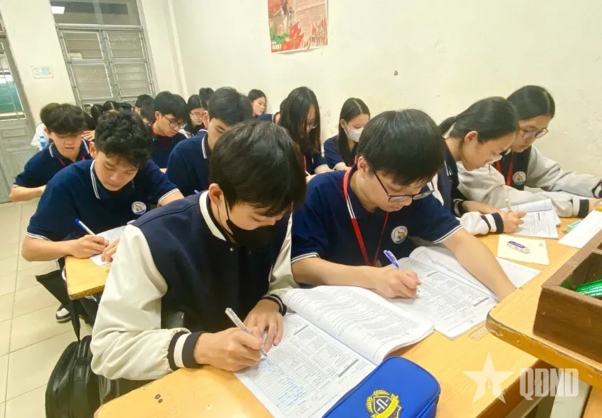 Học sinh Trường THPT Hoàng Cầu (Hà Nội) trong giờ học tiếng Anh.